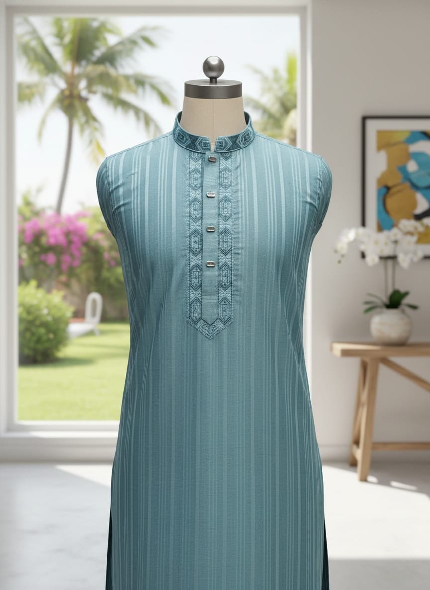 ১. রাজকীয় ডিজাইন: কলার এবং বুকের অংশে নিখুঁত এমব্রয়ডারি কাজ, যা আপনাকে দেবে একটি প্রিমিয়াম লুক।