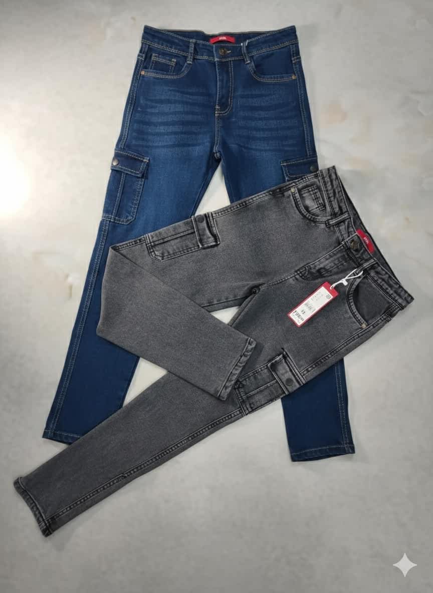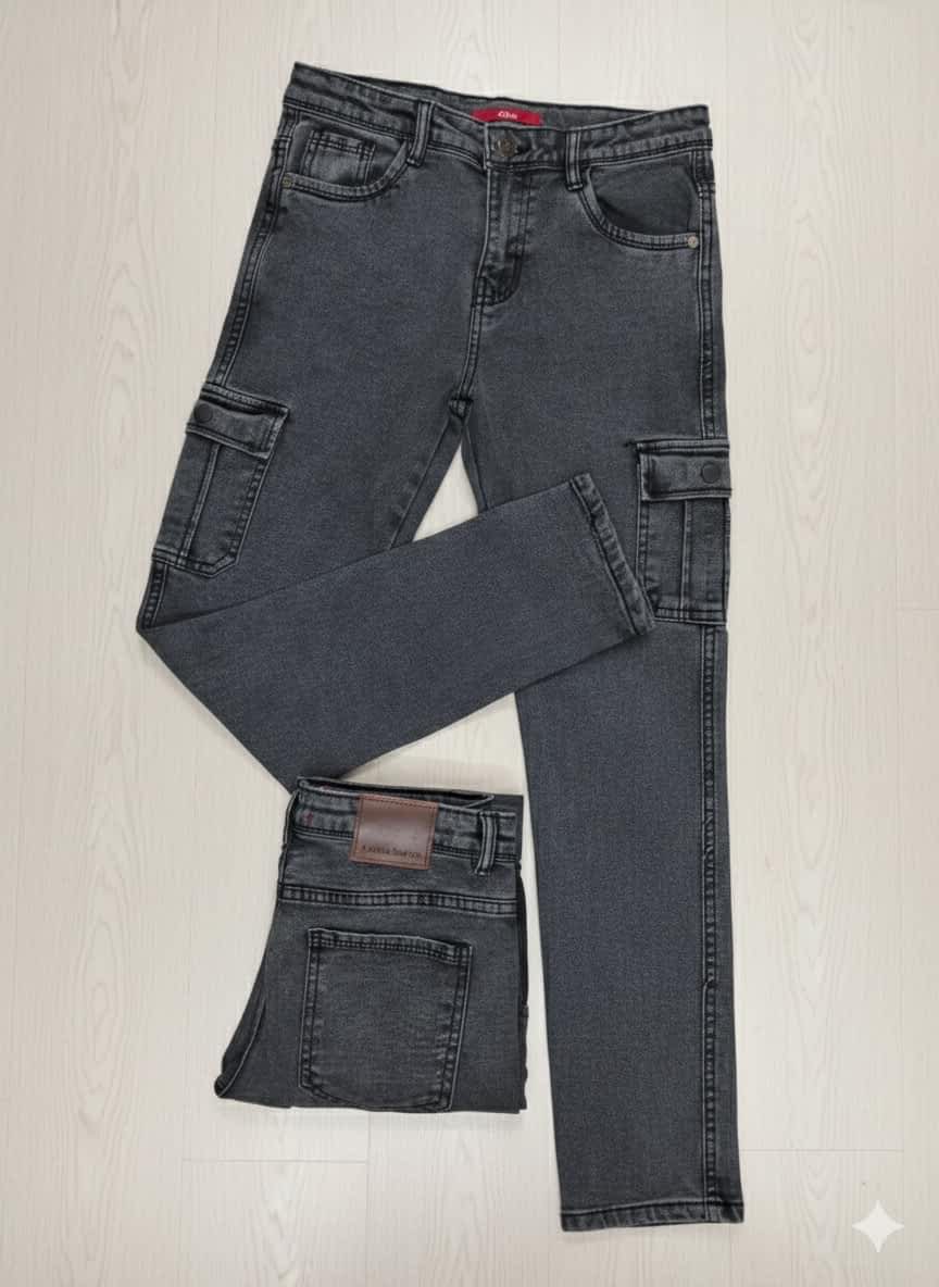 👖✨৬-১৬ বছরের প্রিমিয়াম কোয়ালিটি ৬-পকেট ডেনিম কার্গো প্যান্ট!