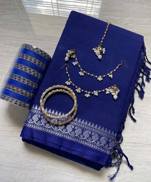 Colour=Blue,Full cotton Saree.